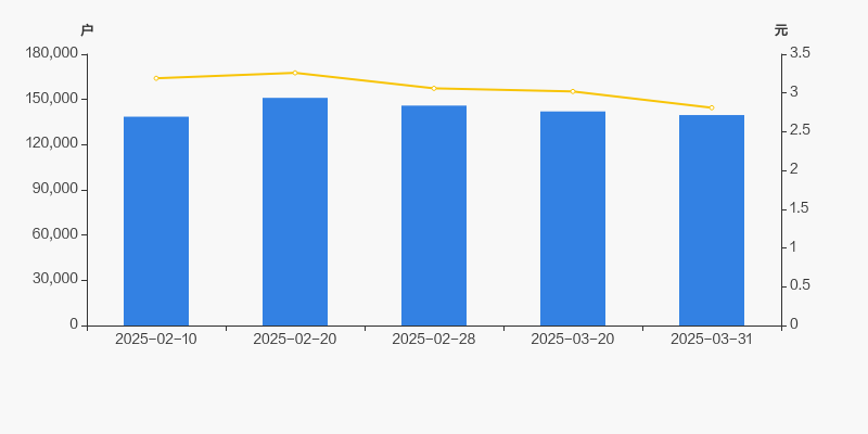 自2025年2月20日以来,公司股东户数连续3期下降,截至目前减幅为7.56%。2025年2月20日至2025年3月31日区间股价下降13.80%。