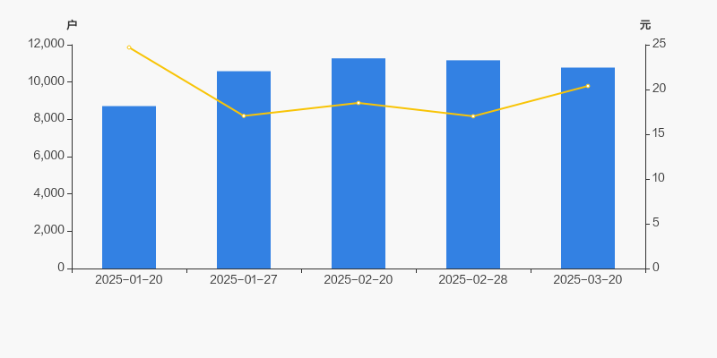 2025年1月20日至今,公司股东户数显著增长,区间涨幅为23.72%。2025年1月20日至2025年3月20日区间股价下降17.45%。