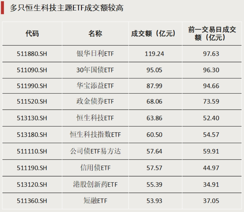 多只恒生科技主题ETF成交额较高