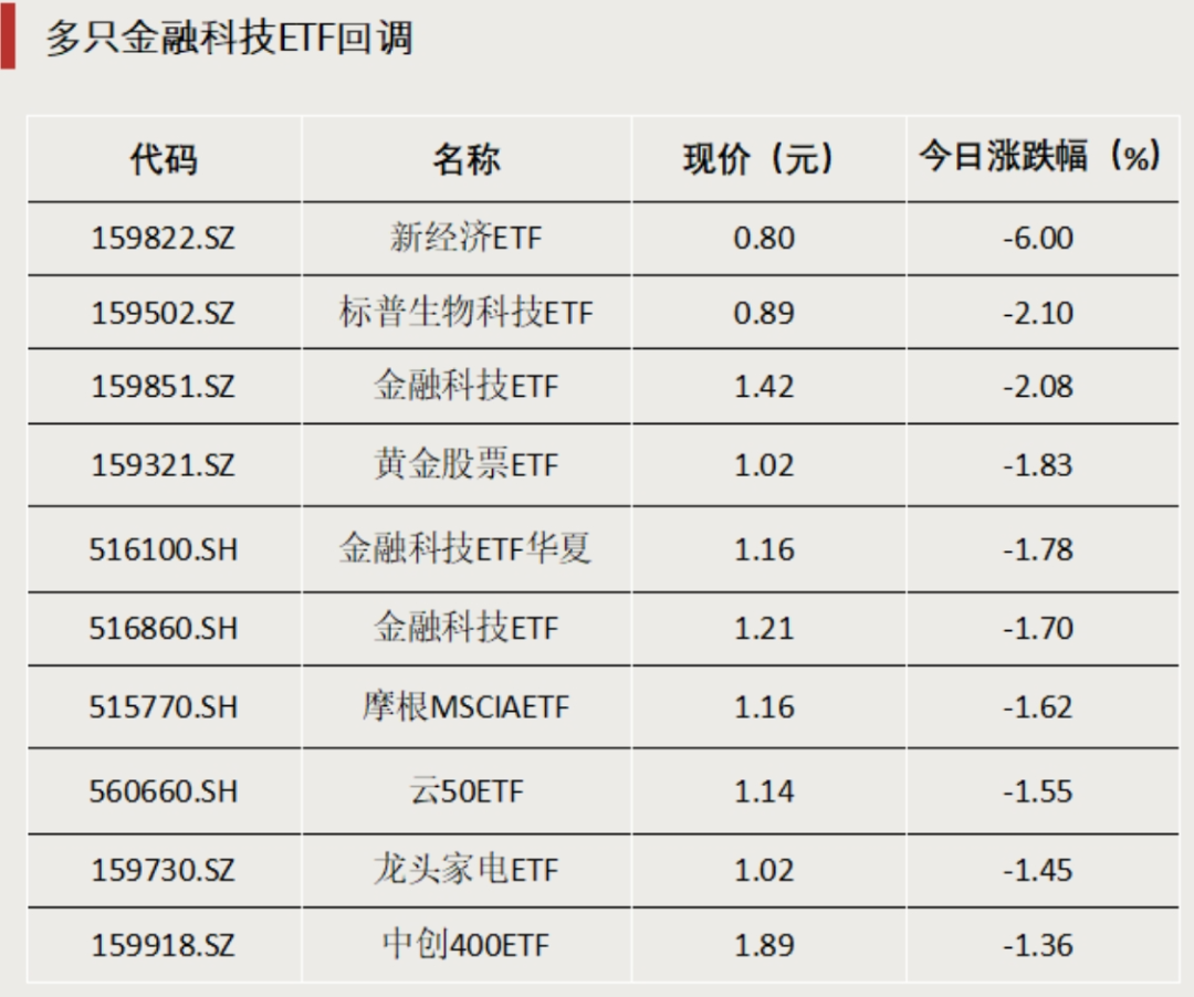 多只金融科技ETF回调