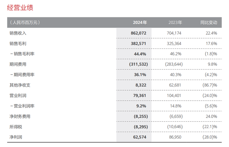 净利润方面,华为实现626亿元,同比减少28%,这一下降主要受2023年华为出售荣耀业务获得特殊收益的影响。