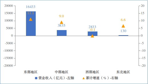 1-2月,规模以上电子信息制造业东部地区实现营业收入16433亿元,同比增长11.1%;中部地区实现营业收入3835亿元,同比增长9%;西部地区实现营业收入2833亿元,同比下降0.1%;东北地区实现营业收入130亿元,同比增长6.6%。