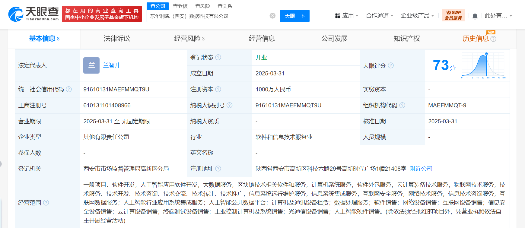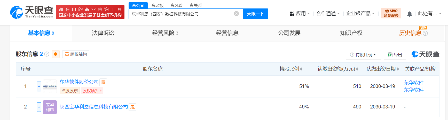 每经AI快讯,天眼查App显示,近日,东华利恩(西安)数据科技有限公司成立,法定代表人为兰智升,注册资本1000万元人民币,经营范围含软件开发、人工智能应用软件开发、大数据服务、区块链技术相关软件和服务、计算机系统服务、软件外包服务、云计算装备技术服务、物联网技术服务等。股东信息显示,该公司由东华软件(002065)、陕西宝华利恩信息科技有限公司分别持股51%、49%。