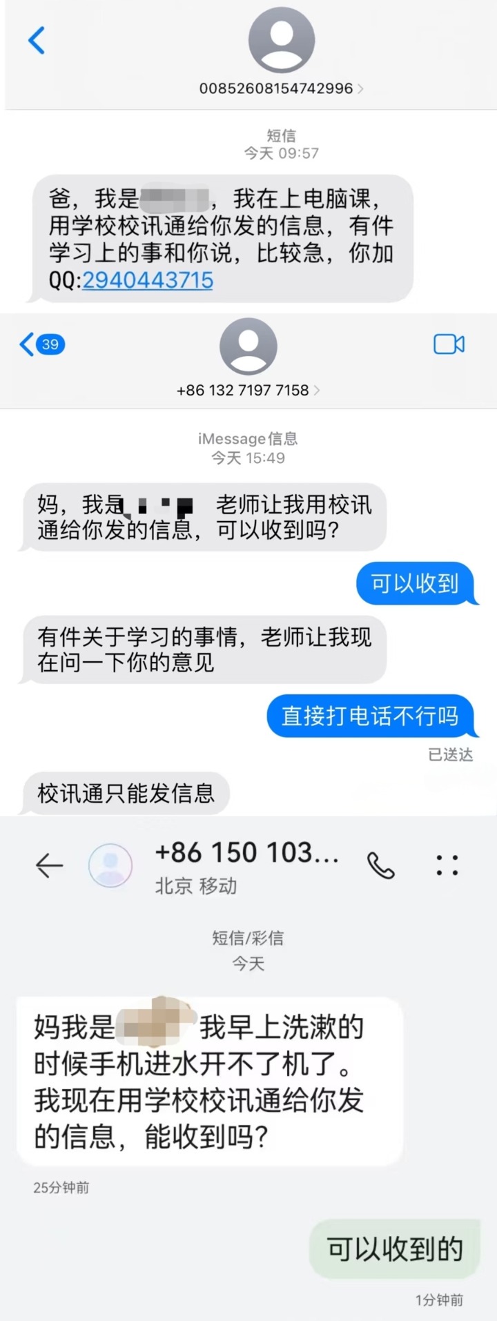 不少家长都收到过假借学生之名发送的信息。