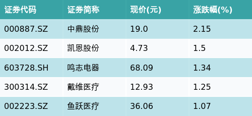 截至收盘,呼吸机主题涨跌幅最高的五只股票为:中鼎股份(000887.SZ)、凯恩股份(002012.SZ)、鸣志电器(603728.SH)、戴维医疗(300314.SZ)与鱼跃医疗(002223.SZ)。详情见下表: