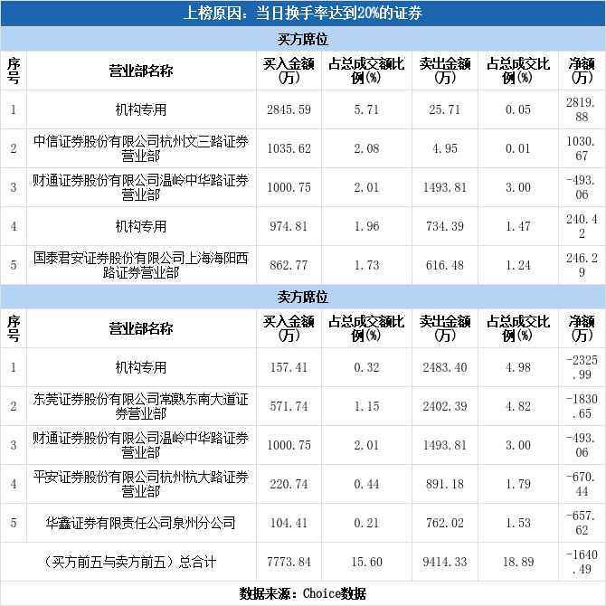 龙虎榜数据显示,今日共3个机构席位出现在龙虎榜单上,分别位列买一、买四、卖一,合计净买入734.32万元,占该股今日总成交额的1.47%。