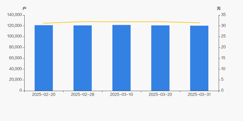 2025年2月20日至今,公司股东户数有所下降,区间跌幅为0.76%。2025年2月20日至2025年3月31日区间股价上涨0.64%。