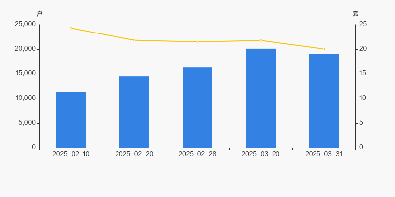 2025年2月10日至今,公司股东户数显著大幅增长,区间涨幅达67.77%。2025年2月10日至2025年3月31日区间股价下降17.41%。