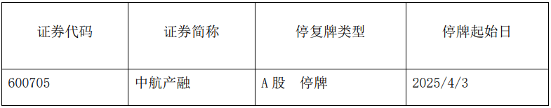 【大河财立方消息】4月2日,中航工业产融控股股份有限公司(证券简称:中航产融)发布公告称,公司拟以股东大会决议方式主动撤回A股股票在上海证券交易所的上市交易,并转而申请在全国中小企业股份转让系统转让。根据相关规定,公司股票自2025年4月3日开市起停牌,直至上海证券交易所在公告公司股票终止上市决定之日后5个交易日内对公司股票予以摘牌。