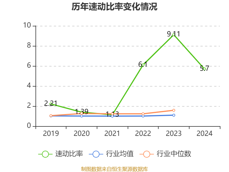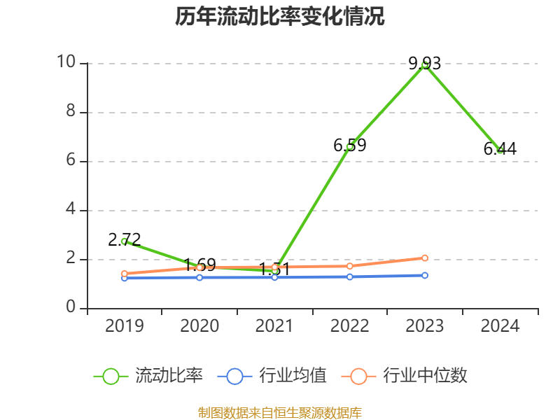 2024年,公司流动比率为6.44,速动比率为5.7。