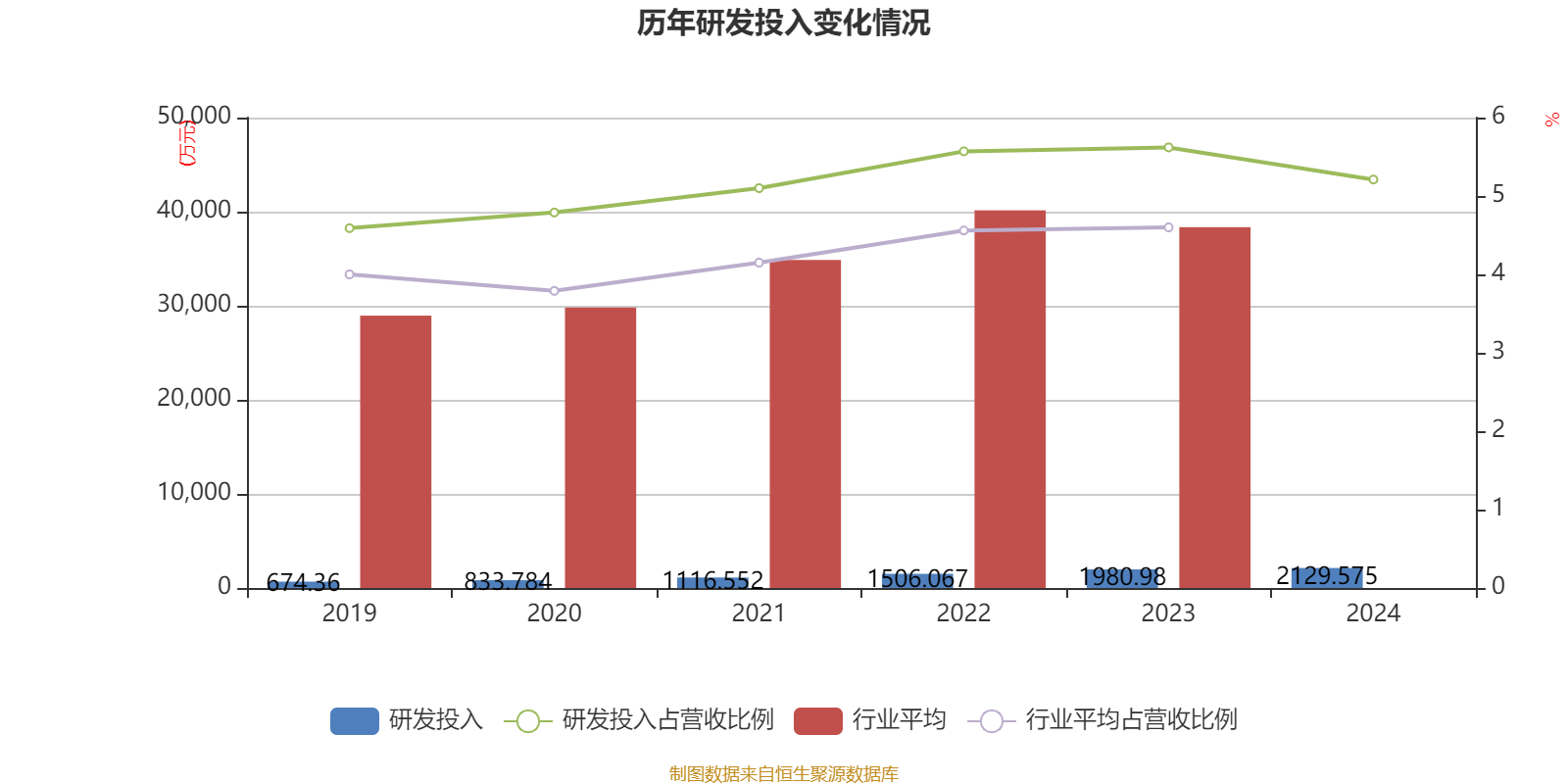 2024年全年,公司研发投入金额为2129.57万元,同比增长7.5%;研发投入占营业收入比例为5.21%,相比上年同期下降0.41个百分点。此外,公司全年研发投入资本化率为0%。