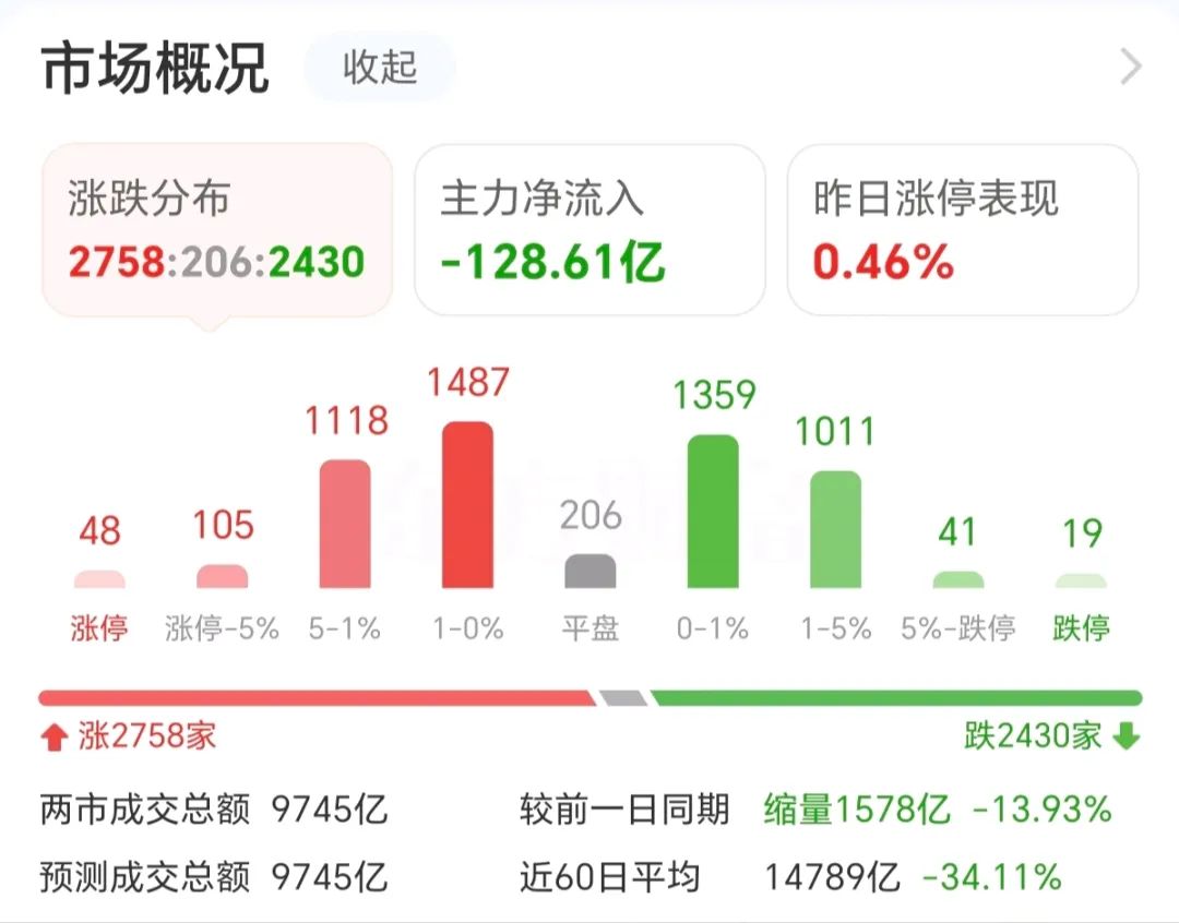 周三(4月2日) 市场全天冲高回落,三大指数微幅上涨,两市全天成交额9745亿,较上个交易日缩量1578亿,创年内第二地量。截至收盘,沪指涨0.05%,深成指涨0.09%,创业板指涨0.13%。