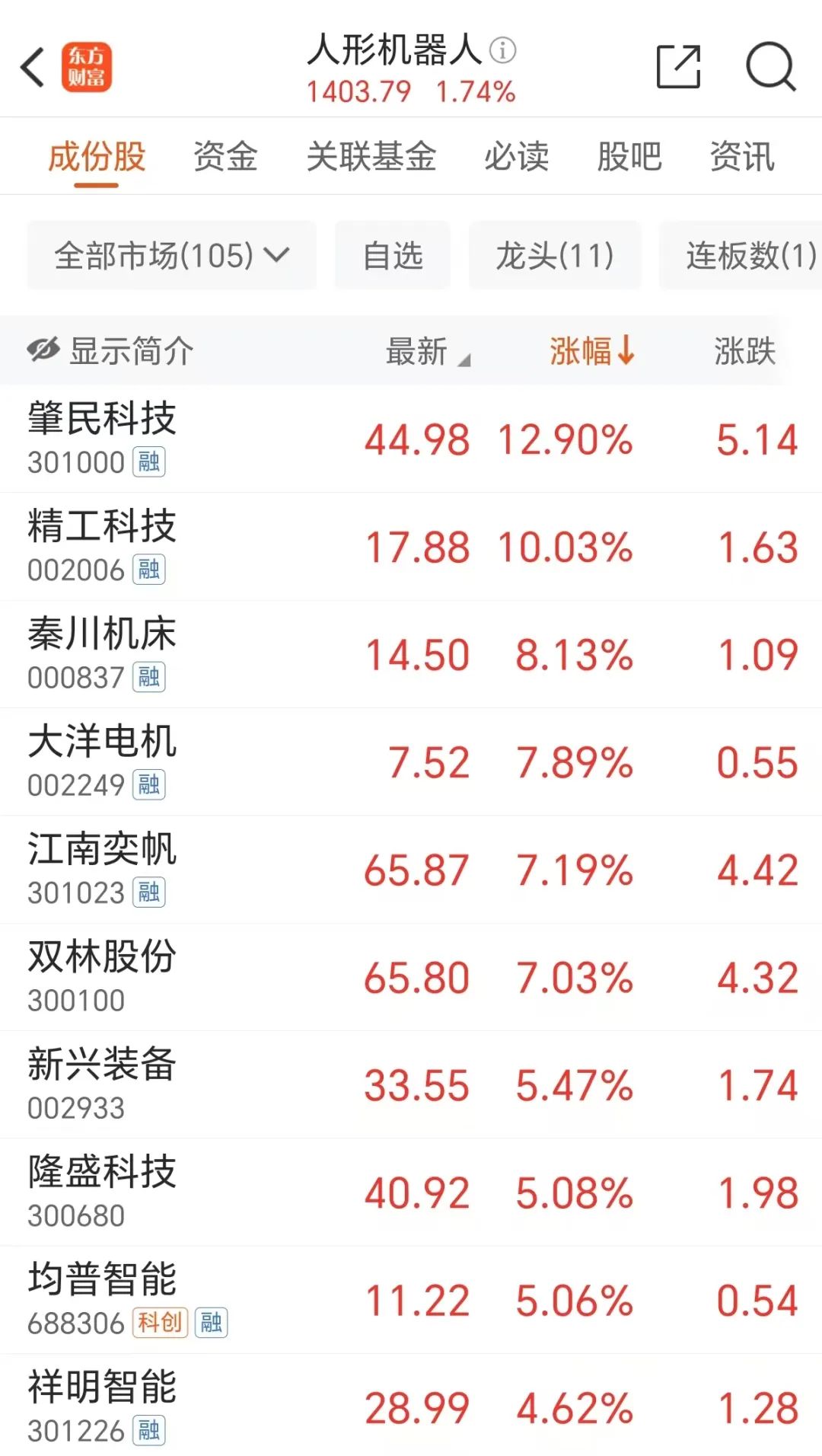 周三机器人概念股再度走强,肇民科技涨超12%,精工科技等涨停。