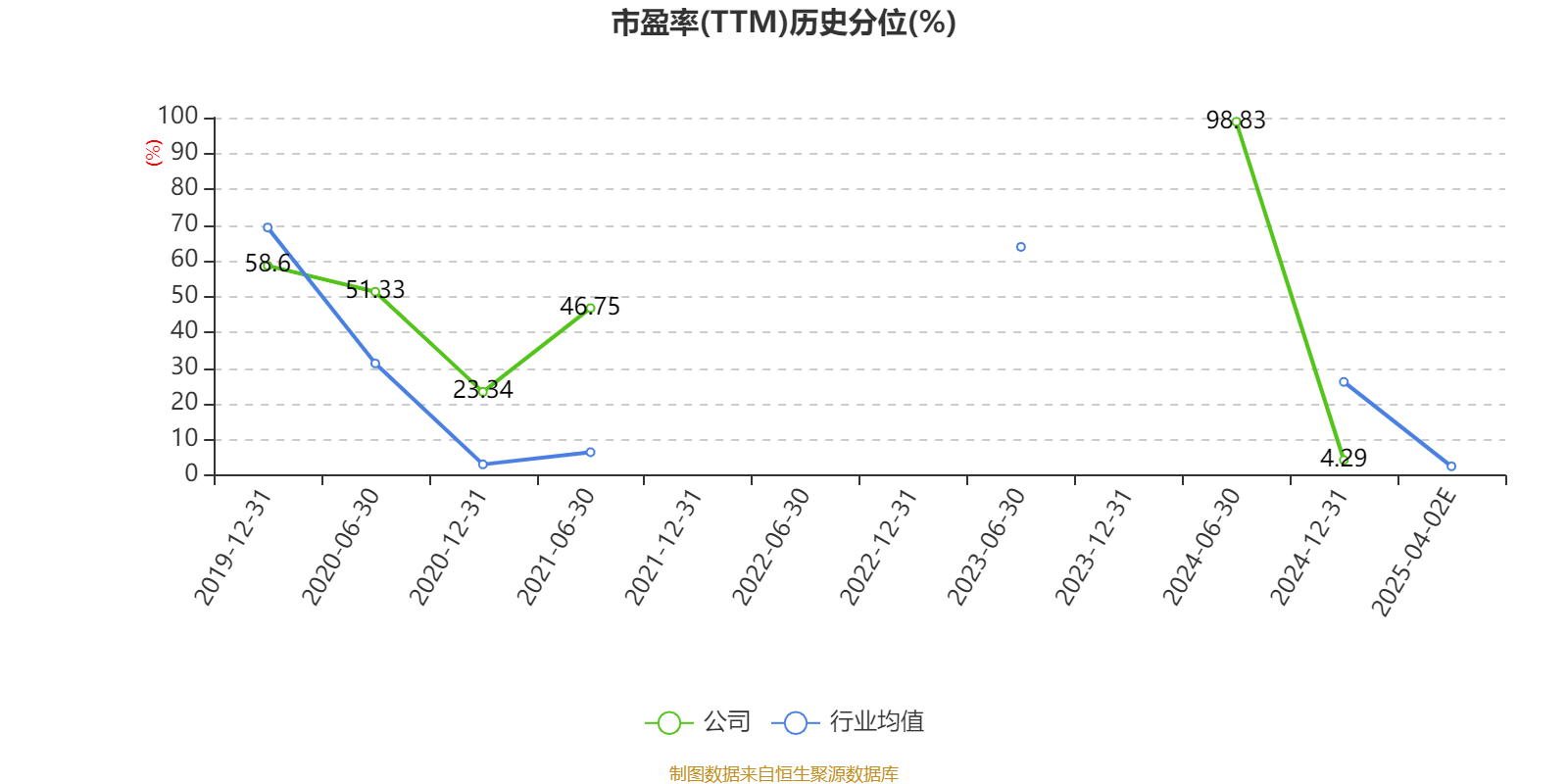 市盈率、市净率为负时,不显示当期分位数,会导致折线图中断。