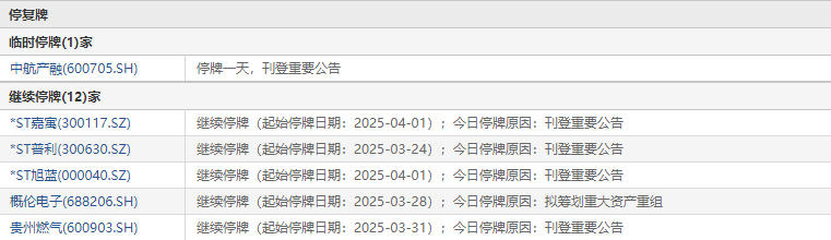 上证报中国证券网讯 4月3日,1家公司临停:中航产融。