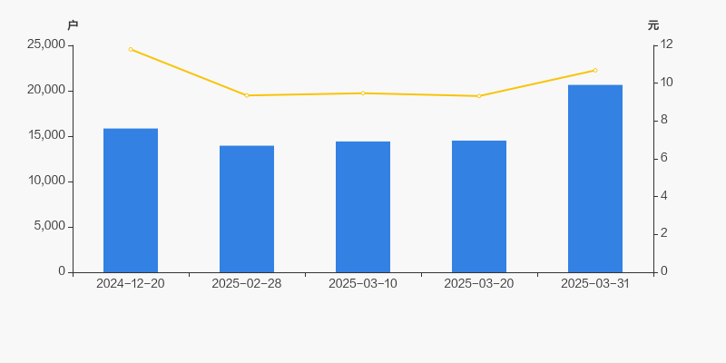 自2025年2月28日以来,公司股东户数连续3期上涨,截至目前增幅为48.04%。2025年2月28日至2025年3月31日区间股价上涨14.22%。