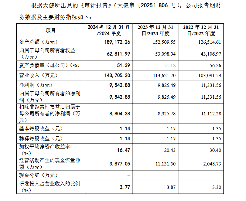纳百川新能源股份有限公司(简称“纳百川”)日前在深交所网站更新了招股说明书,最新披露的财务数据显示,2022-2024年,尽管公司营收从10.3亿元攀升至14.37亿元,但净利润却从1.13亿元下滑至9542.88万元,呈现出明显的增收不增利趋势。最近三年,纳百川扣除非经常性损益后归属于母公司股东净利润分别为1.11亿元、8926 万元、8804 万元,下滑势头也非常明显。