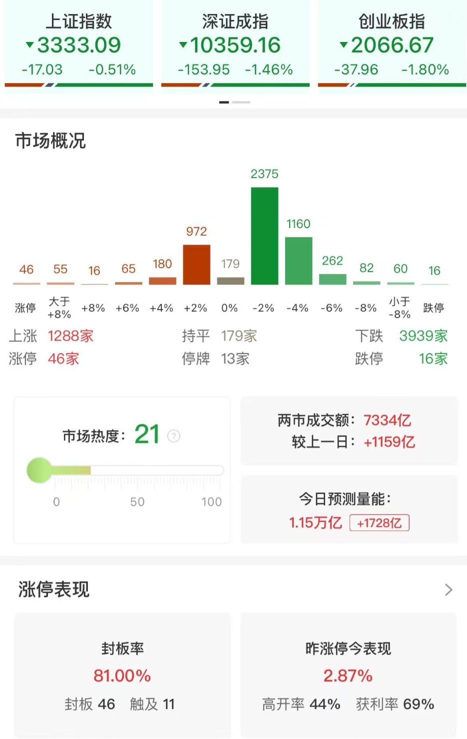 财联社4月3日电,市场早盘震荡走低,创业板指领跌。沪深两市半日成交额7334亿,较上个交易日放量1159亿。盘面上市场热点主要集中在消费等内循环方向,个股跌多涨少,全市场超3900只个股下跌。从板块来看,大消费股集体走强,兽药、旅游、零售等方向表现活跃,永辉超市等涨停。物流、统一大市场概念股震荡走高,天顺股份涨停。中日韩自贸区概念股集体大涨,青岛双星等涨停。下跌方面,高外销占比概念股集体重挫,巨星科技等多股跌停。板块方面,中日韩自贸区、兽药、物流、旅游等板块涨幅居前,高外销占比、消费电子、PCB、AI眼镜等板块跌幅居前。截至收盘,沪指跌0.51%,深成指跌1.46%,创业板指跌1.8%。