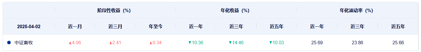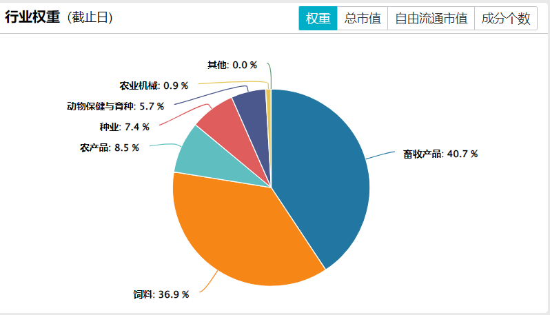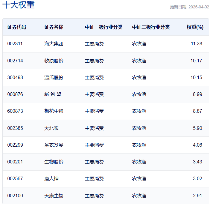 中证畜牧养殖指数:前十大权重累计占比为68.78%,集中度较高。