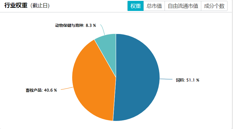 中证畜牧养殖指数:选取涉及畜禽饲料、畜禽药物以及畜禽养殖等业务的上市公司证券作为样本,目前样本数量共有31只。个股平均流通市值128亿元。