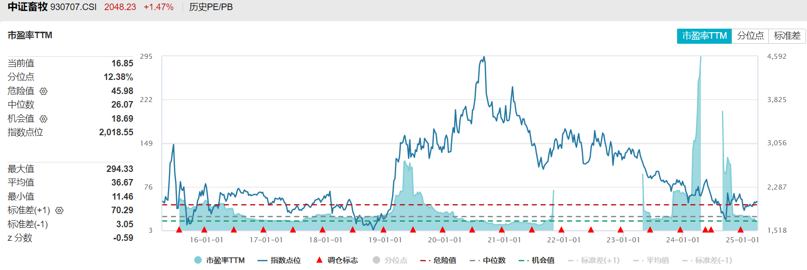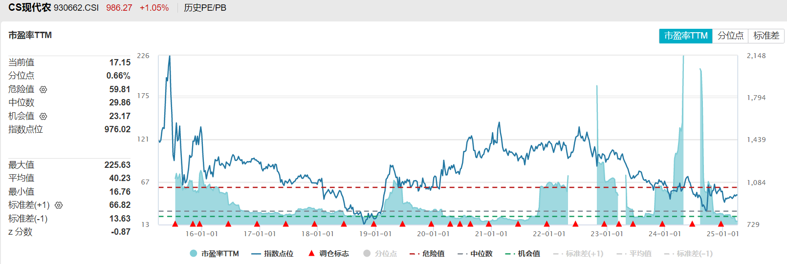 中证现代农业主题指数:目前市盈率TTM处于历史1%的分位,同样处于历史非常低的水平。