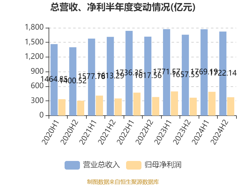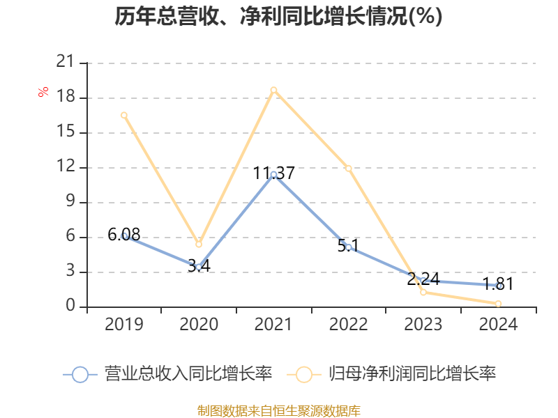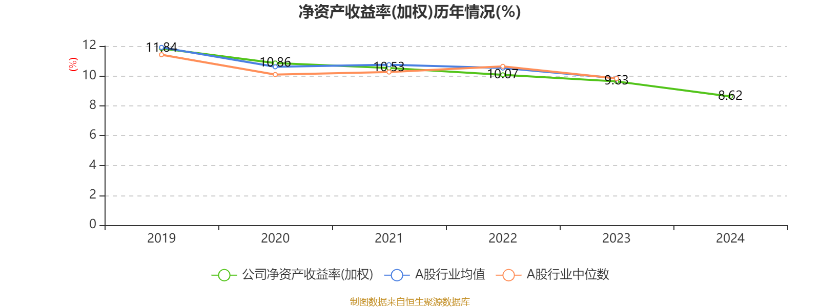 数据显示,2024年公司加权平均净资产收益率为8.62%,较上年同期下降1.01个百分点。