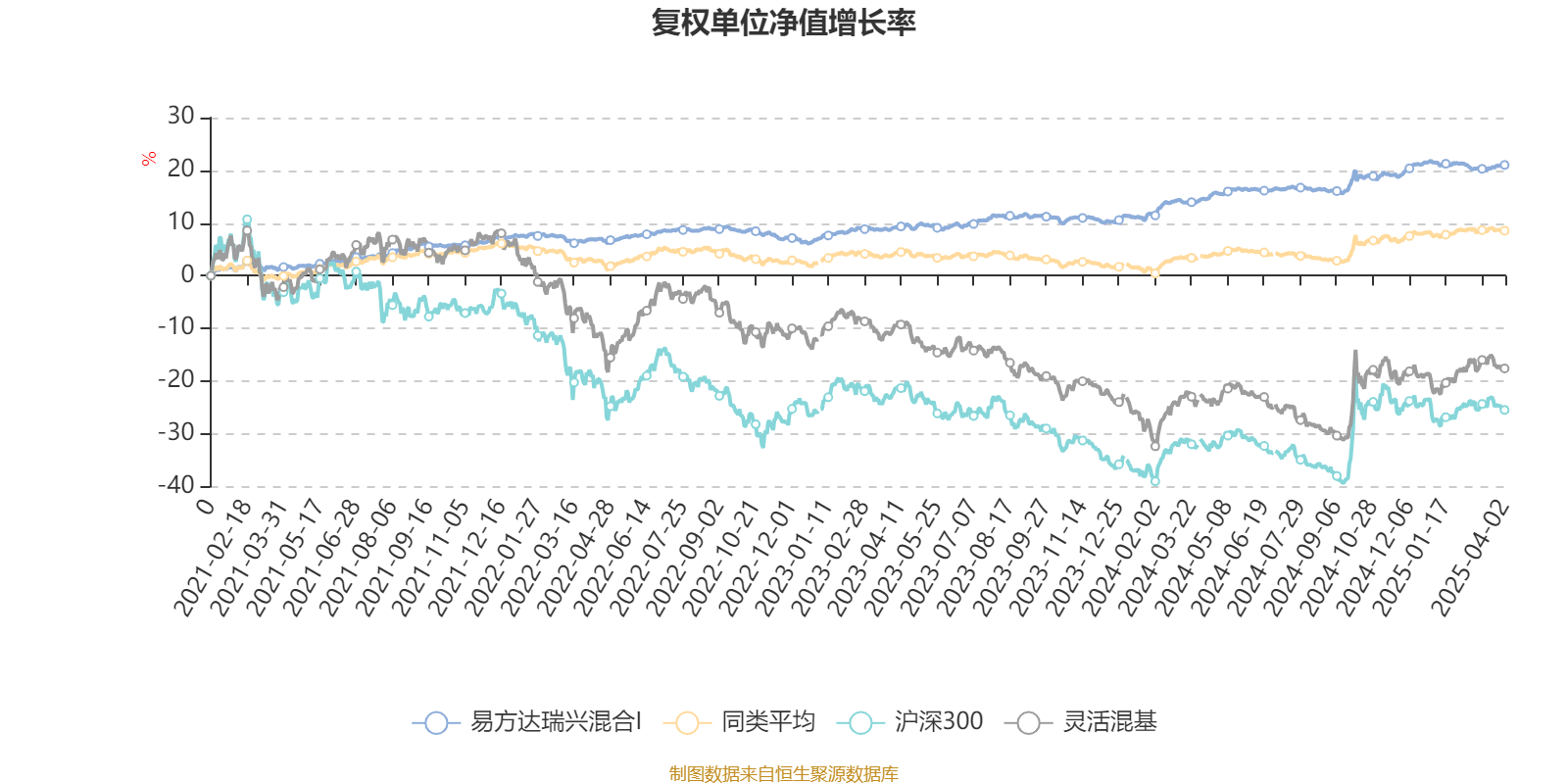 截至4月2日,易方达瑞兴混合I近三个月复权单位净值增长率为-0.47%,位于同类可比基金124/155;近半年复权单位净值增长率为1.01%,位于同类可比基金83/155;近一年复权单位净值增长率为5.66%,位于同类可比基金45/155;近三年复权单位净值增长率为13.19%,位于同类可比基金18/154。