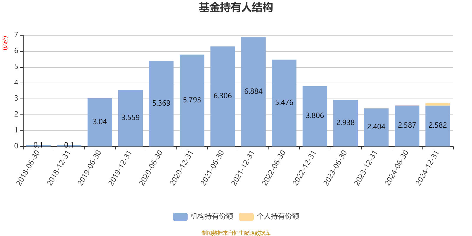 截至2024年12月31日,基金持有人共计1010户,合计持有2.72亿份。其中管理人员工持有4613.86份,机构持有份额占比94.81%,个人投资者占比5.19%。