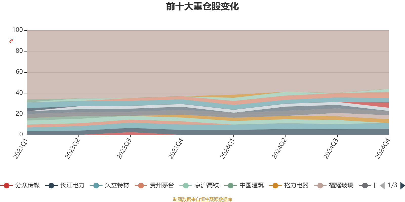 截至2024年末,基金十大重仓股分别是粤高速A、长江电力、久立特材、传音控股、陕西煤业、五粮液、福耀玻璃、格力电器、中国石化、中国神华。
