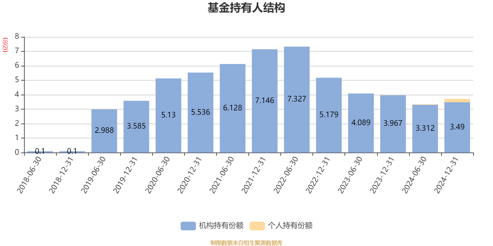 截至2024年12月31日,基金持有人共计1473户,合计持有3.72亿份。其中管理人员工持有15.05万份,占比0.04%,机构持有份额占比93.82%,个人投资者占比6.18%。