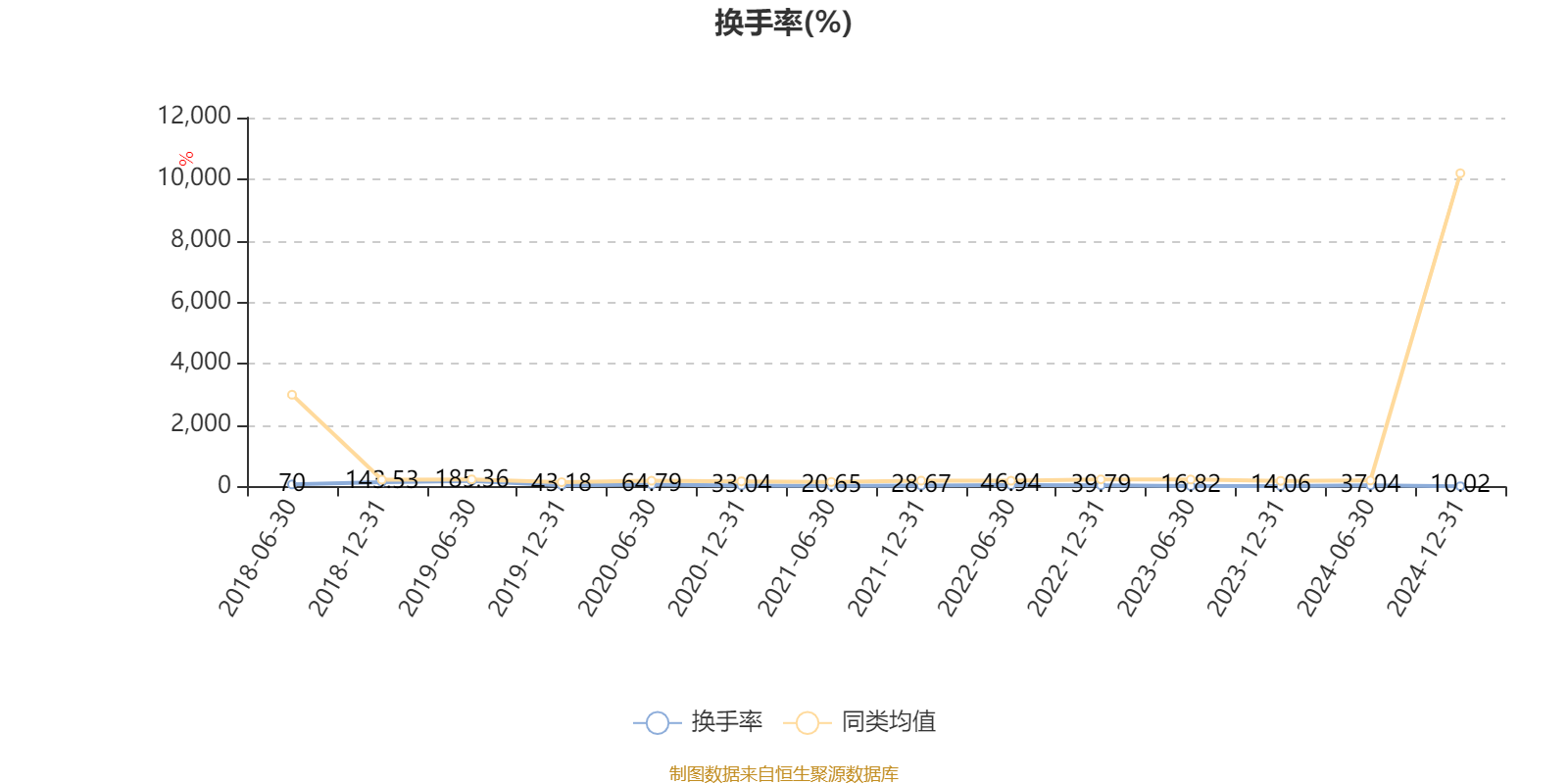 截至2024年12月31日,基金最近一年换手率约49.76%,持续低于同类均值。