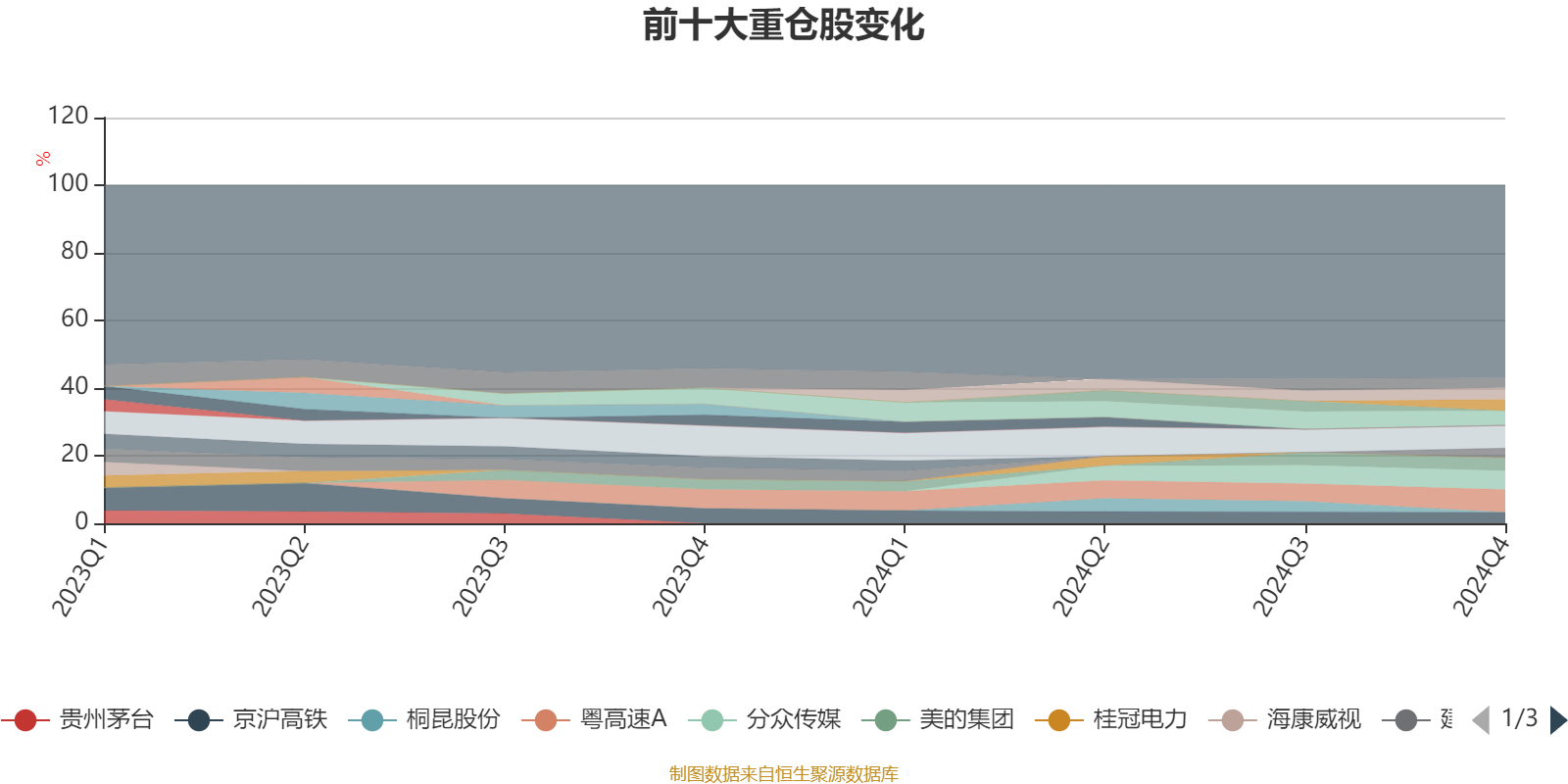 截至2024年末,基金十大重仓股分别是长江电力、粤高速A、分众传媒、格力电器、美的集团、招商公路、传音控股、京沪高铁、五粮液、建设银行。