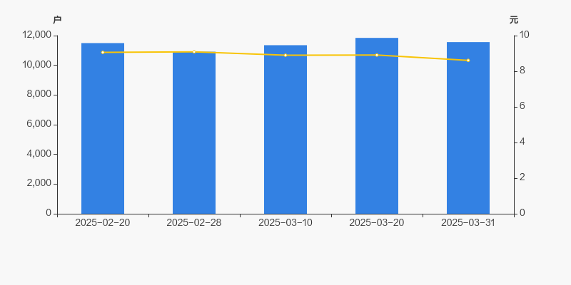 2025年2月20日至今,公司股东户数有所增长,区间涨幅为0.56%。2025年2月20日至2025年3月31日区间股价下降4.97%。