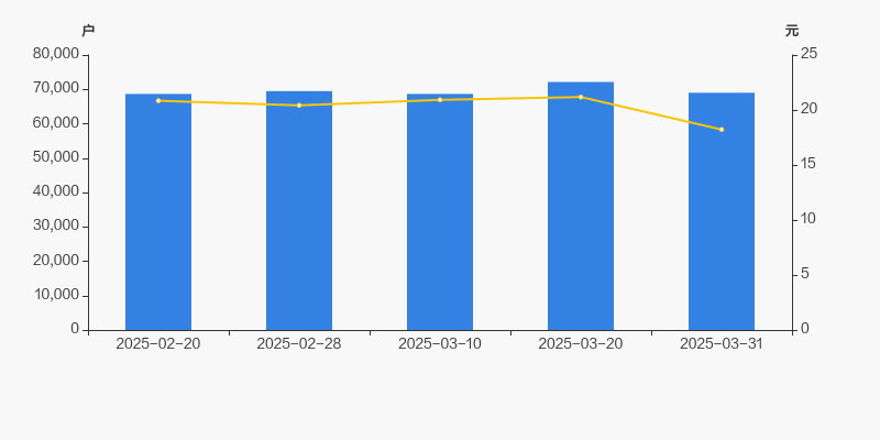 2025年2月20日至今,公司股东户数有所增长,区间涨幅为0.51%。2025年2月20日至2025年3月31日区间股价下降12.57%。