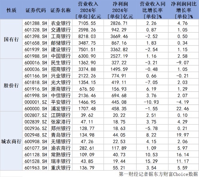 国有大行共实现净利润1.42万亿元,六大行均实现净利润同比增长。农业银行2024年实现净利润2826.71亿元,同比增长4.76%,增速位列国有大行榜首。工商银行和邮储银行增幅微弱,分别同比增长0.50%、0.34%。