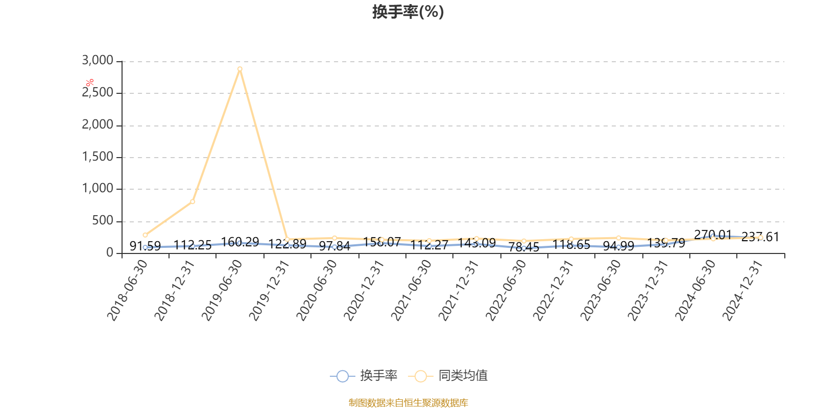 截至2024年12月31日,基金最近一年换手率约497.06%。