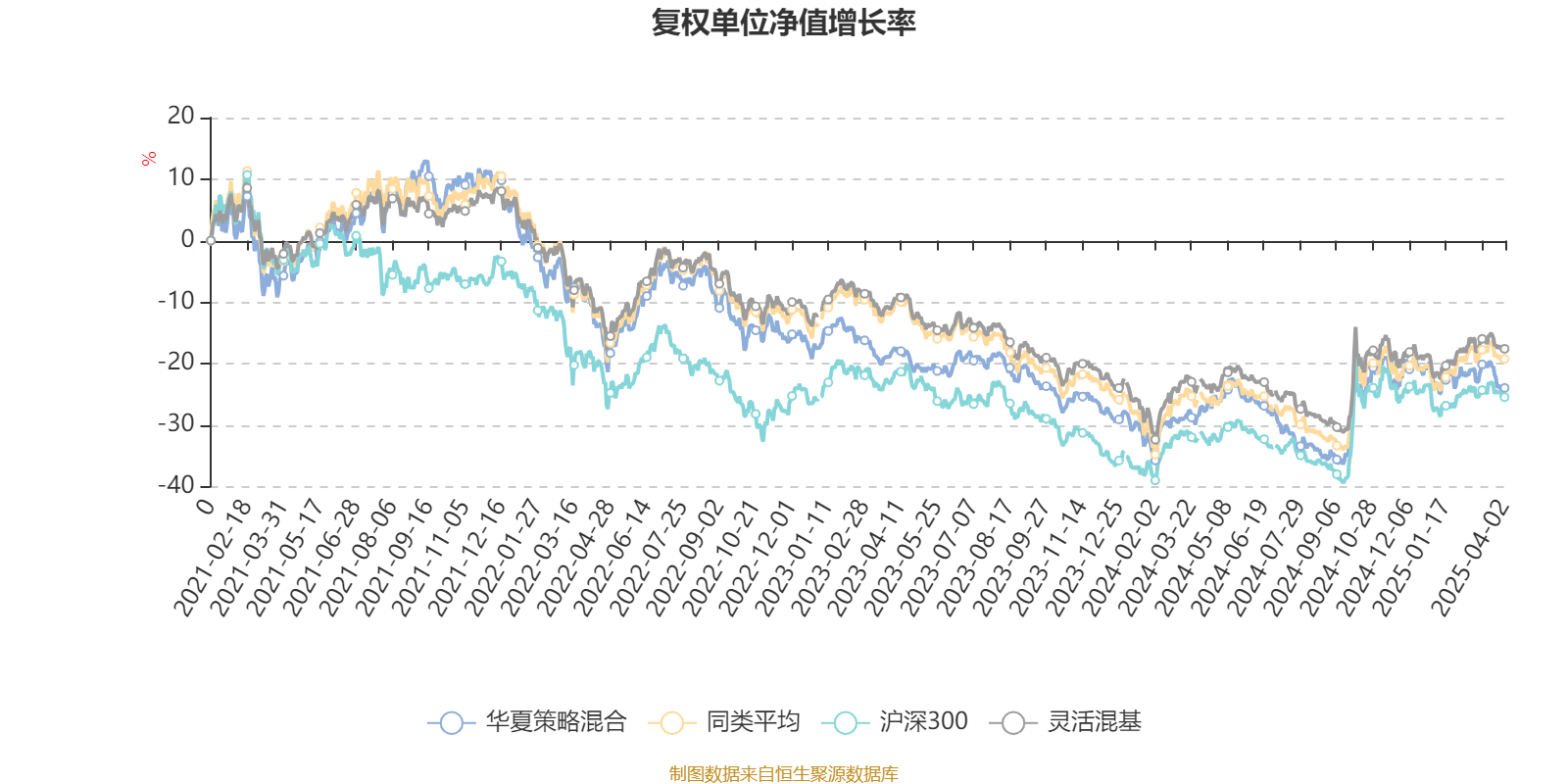 截至4月2日,华夏策略混合近三个月复权单位净值增长率为-2.92%,位于同类可比基金883/918;近半年复权单位净值增长率为-2.31%,位于同类可比基金627/918;近一年复权单位净值增长率为4.17%,位于同类可比基金570/918;近三年复权单位净值增长率为-16.75%,位于同类可比基金565/901。