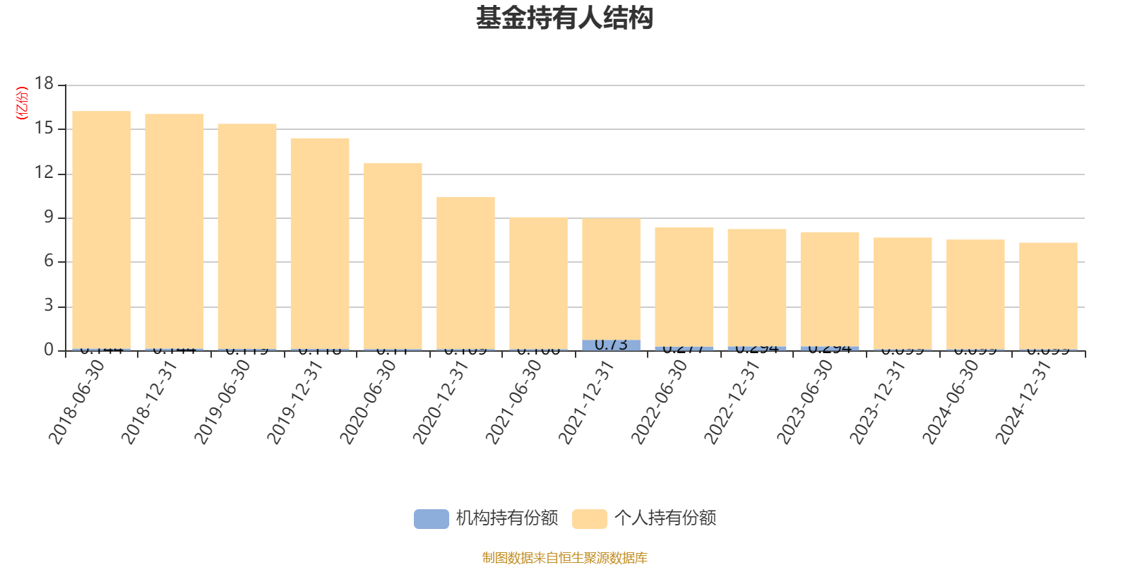 截至2024年12月31日,基金持有人共计4.73万户,合计持有7.31亿份。其中管理人员工持有1087.94份,机构持有份额占比1.36%,个人投资者占比98.64%。