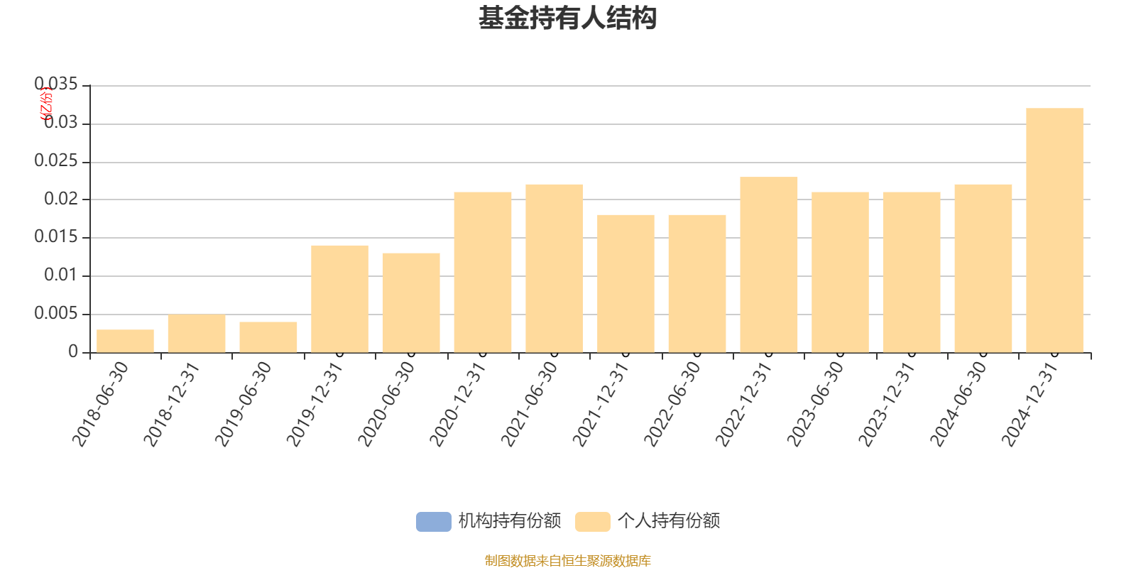 截至2024年12月31日,基金持有人共计338户,合计持有321万份。其中管理人员工持有12.74万份,占比3.97%,机构持有份额占比0.06%,个人投资者占比99.94%。