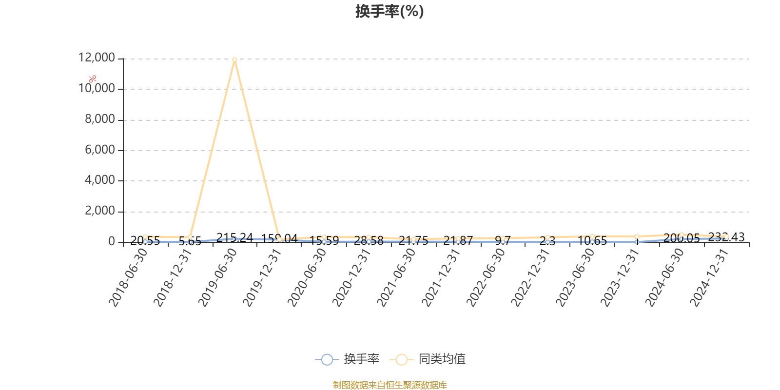 截至2024年12月31日,基金最近一年换手率约417.71%,持续低于同类均值。