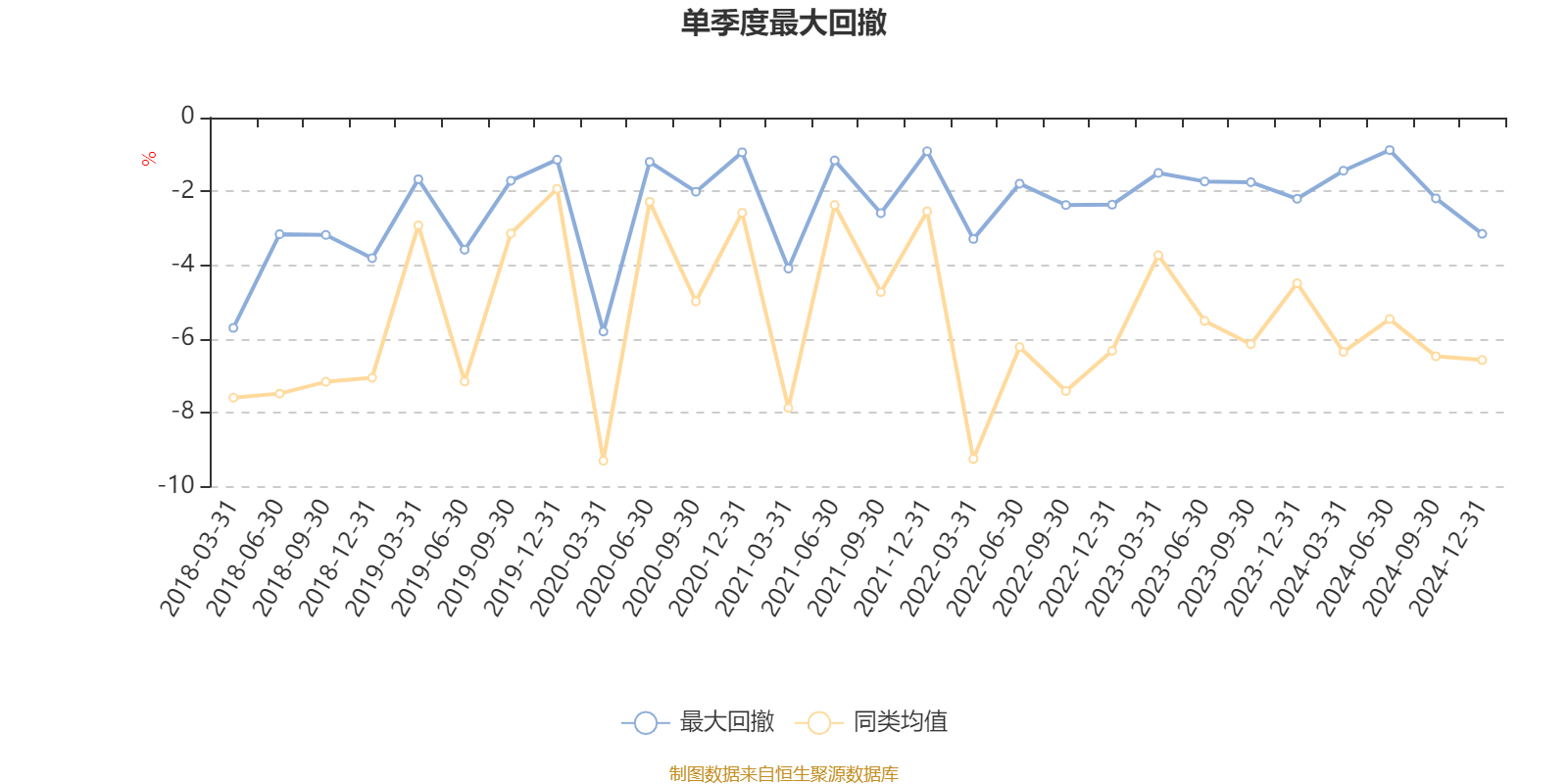截至4月2日,基金近三年最大回撤为4.26%,同类可比基金排名97/102。单季度最大回撤出现在2020年一季度,为5.8%。