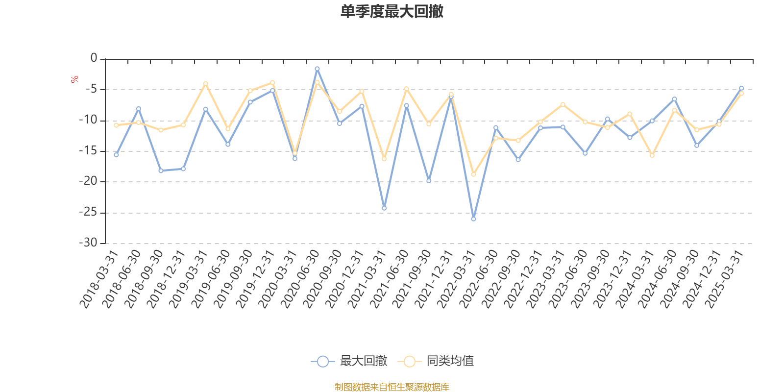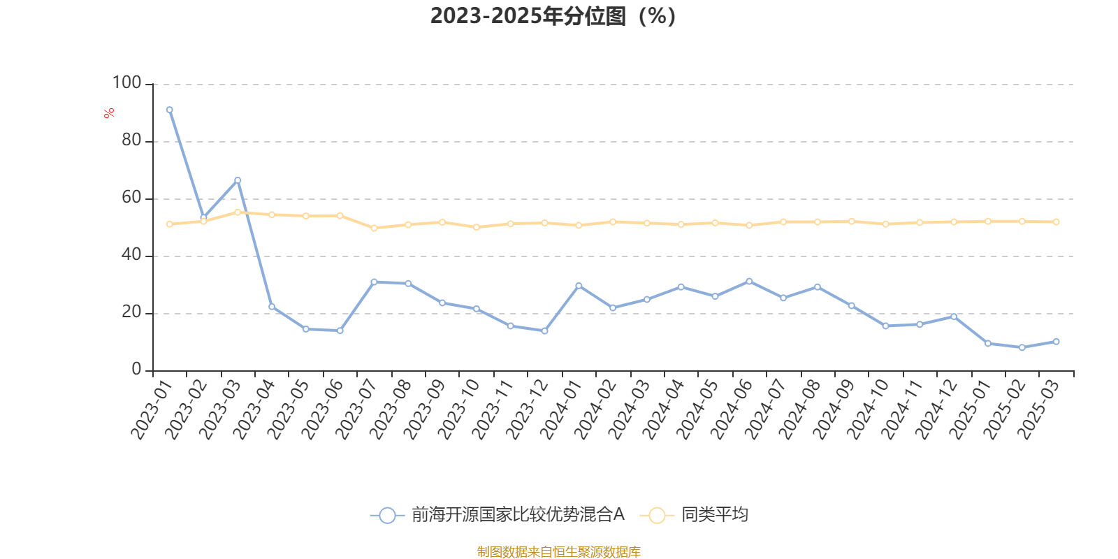 通过所选区间该基金净值增长率分位图,可以观察该基金与同类基金业绩比较情况。图为坐标原点到区间内某时点的净值增长率在同类基金中的分位数。