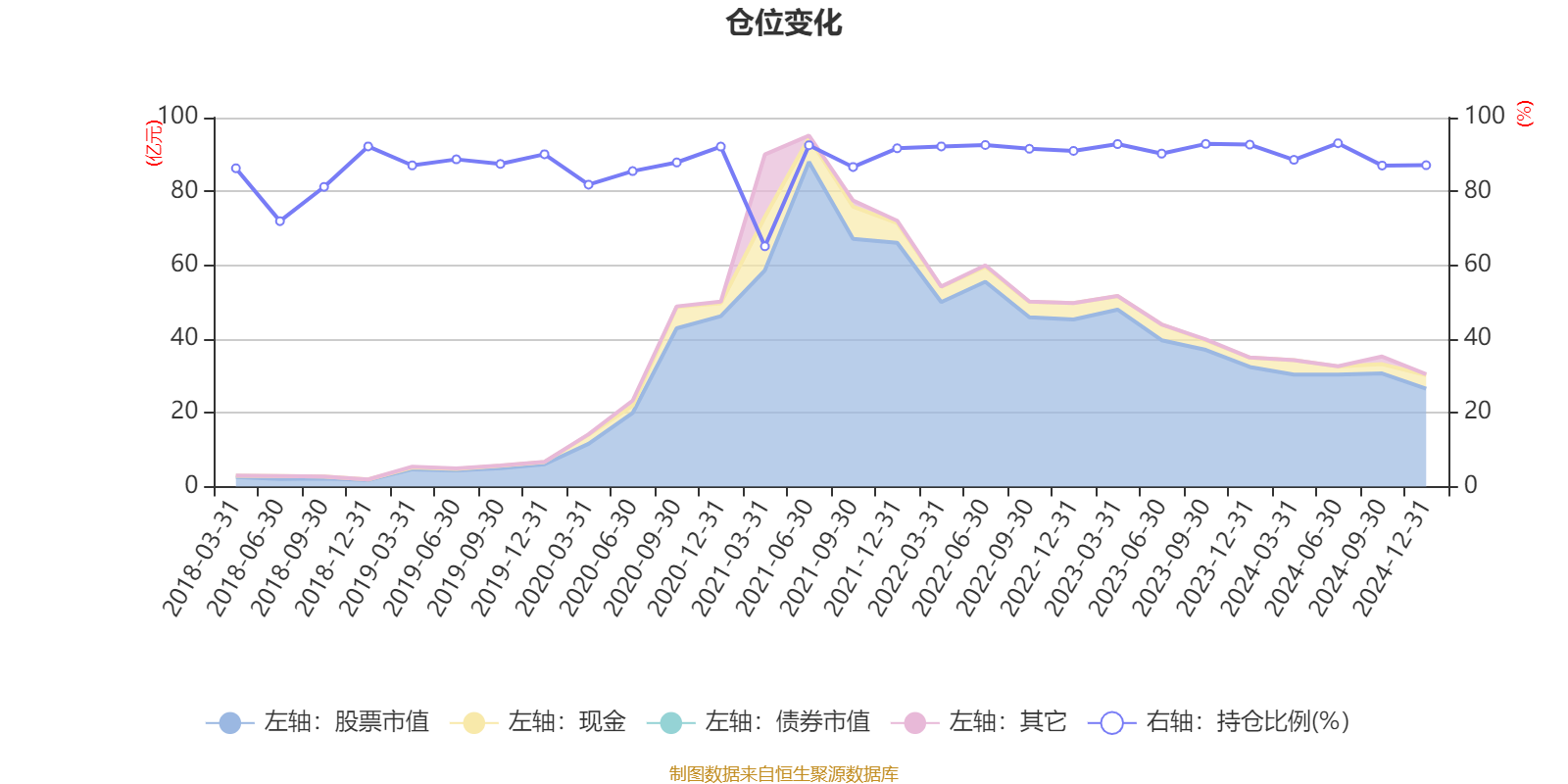 据定期报告数据统计,近三年平均股票仓位为90.97%,同类平均为79.88%。2024年上半年末基金达到93.04%的最高仓位,2021年一季度末最低,为65.12%。