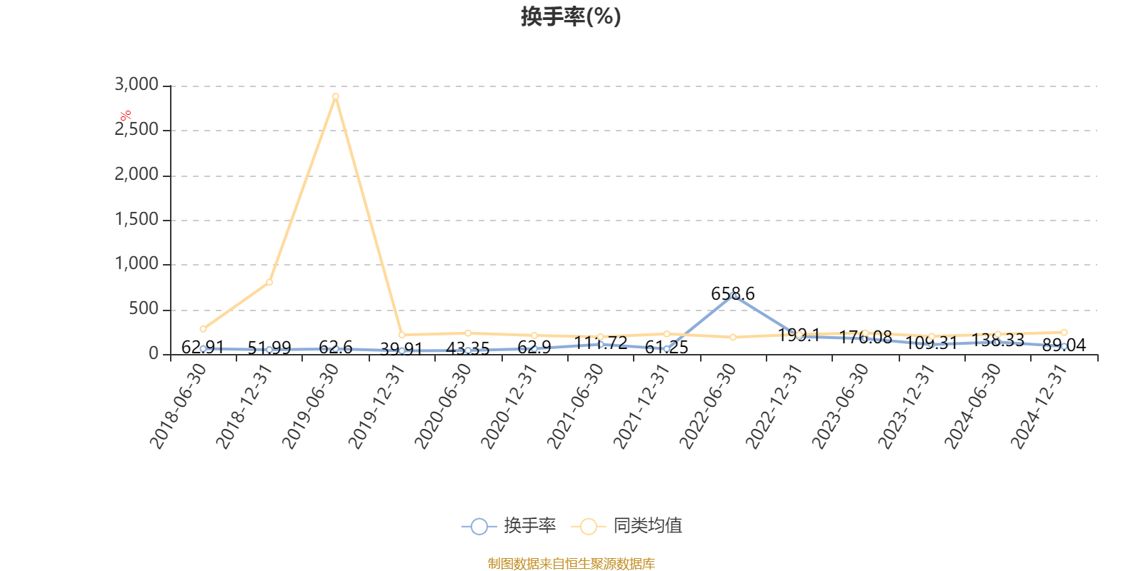 截至2024年12月31日,基金最近一年换手率约227.51%,持续2年低于同类均值。