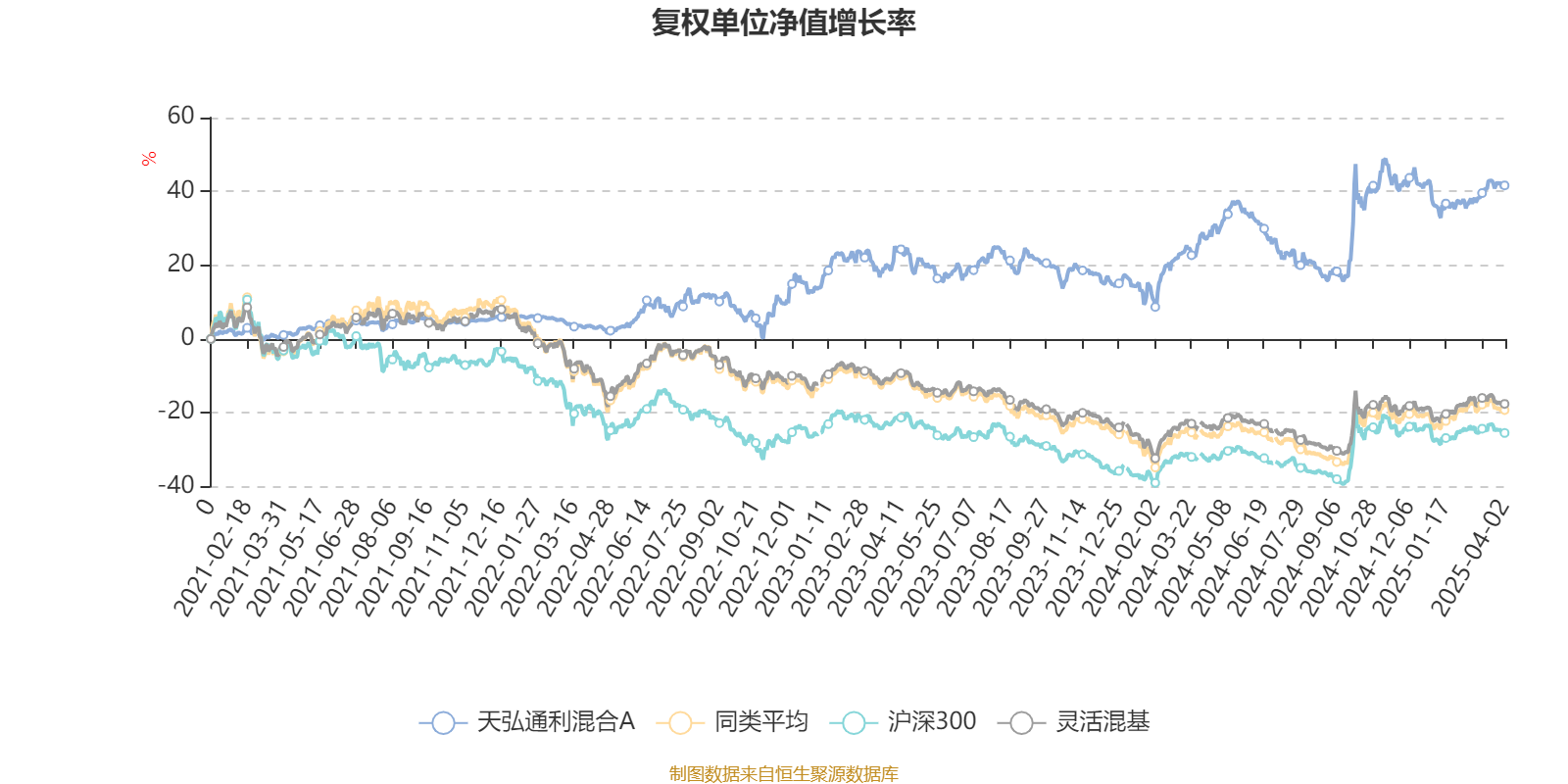 截至4月2日,天弘通利混合A近三个月复权单位净值增长率为2.85%,位于同类可比基金596/918;近半年复权单位净值增长率为-0.23%,位于同类可比基金492/918;近一年复权单位净值增长率为10.38%,位于同类可比基金328/918;近三年复权单位净值增长率为36.68%,位于同类可比基金12/901。