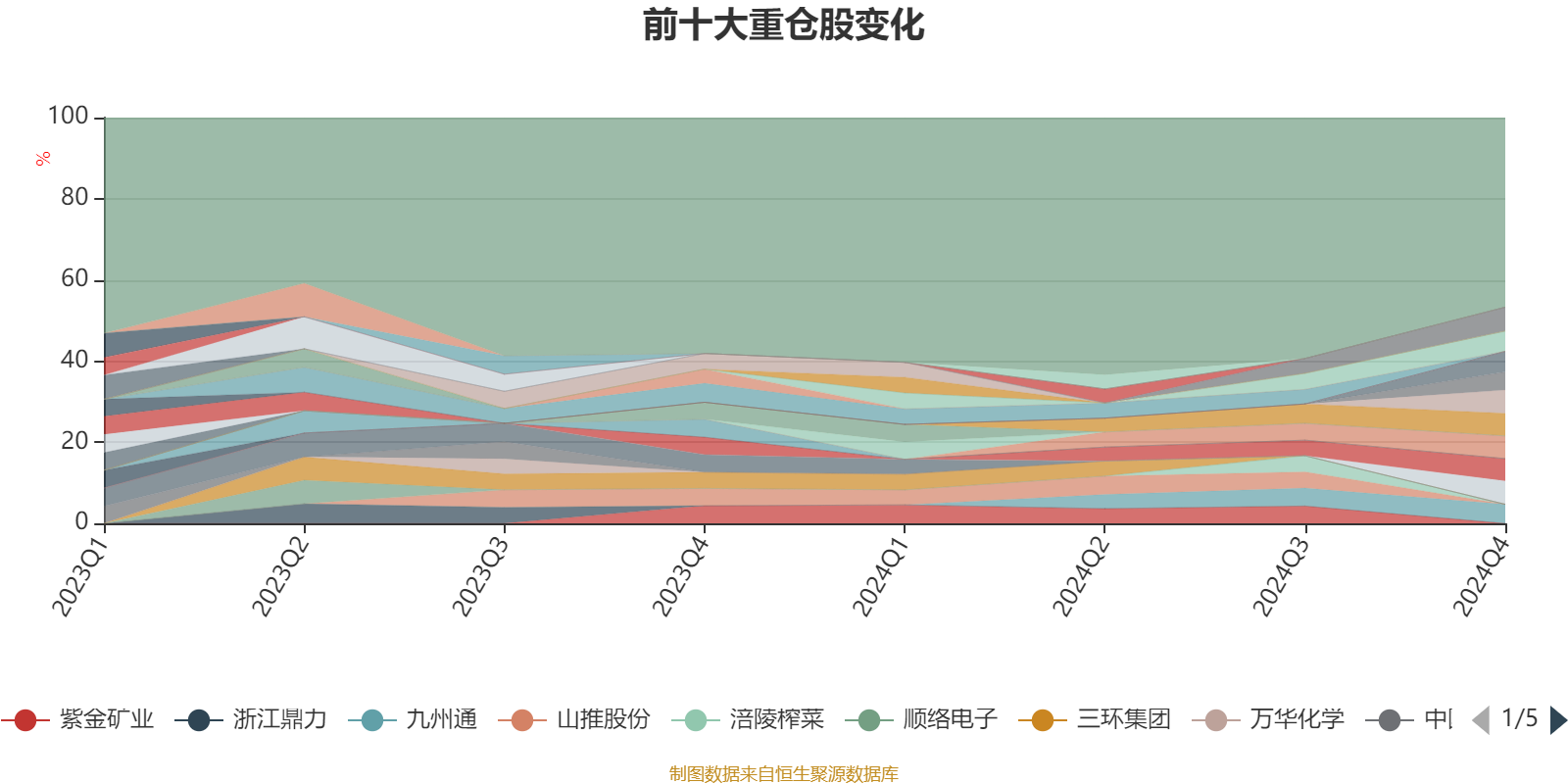 截至2024年末,基金十大重仓股分别是安琪酵母、分众传媒、春秋航空、中航光电、申通快递、伊利股份、中国太保、圆通速递、九州通、云南白药。