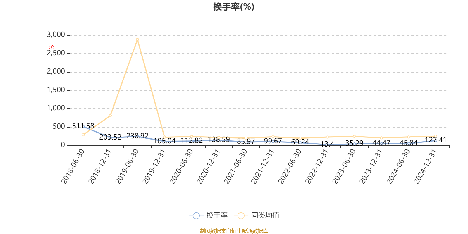 截至2024年12月31日,基金最近一年换手率约173.28%,持续6年低于同类均值。