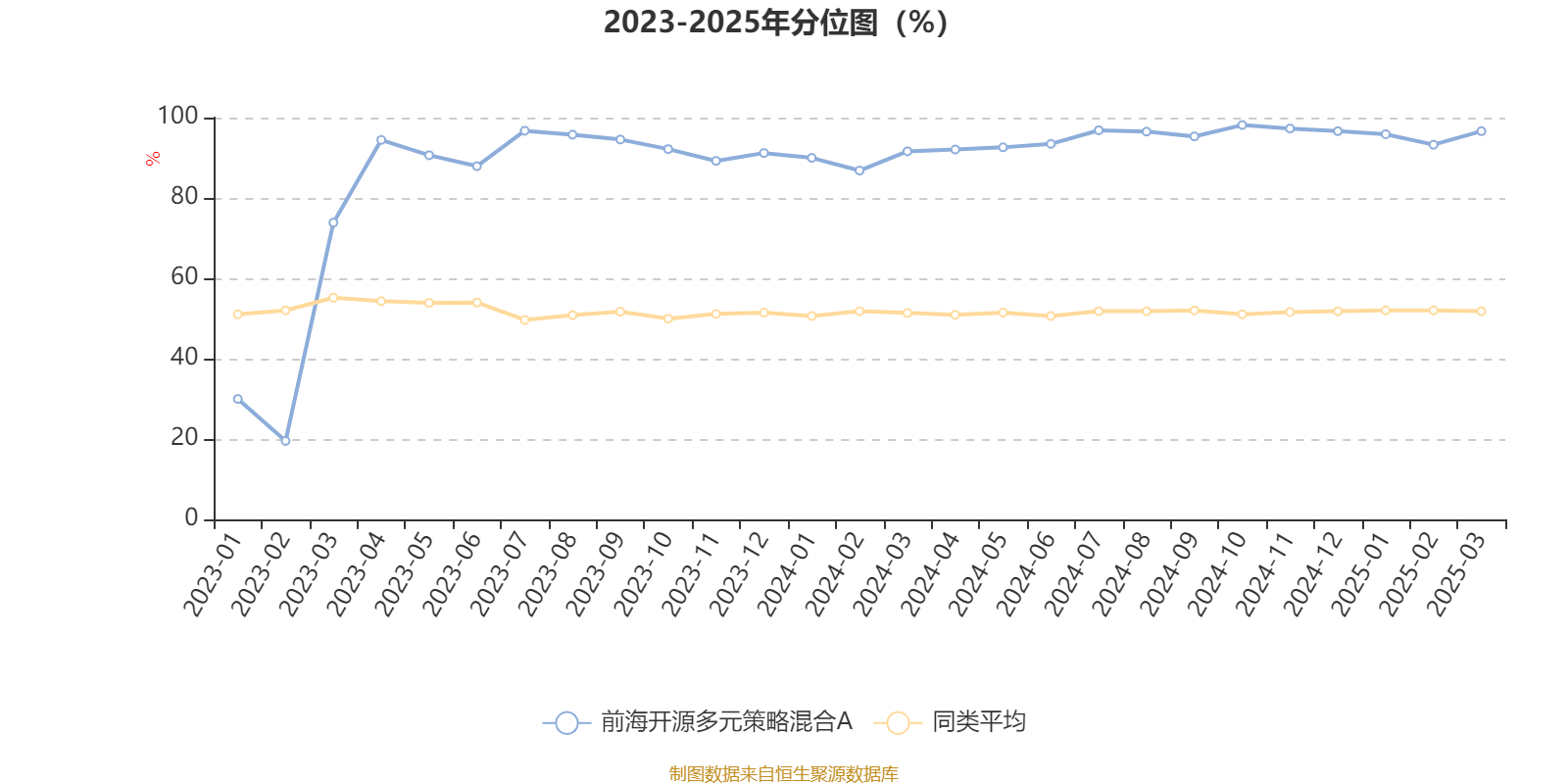 通过所选区间该基金净值增长率分位图,可以观察该基金与同类基金业绩比较情况。图为坐标原点到区间内某时点的净值增长率在同类基金中的分位数。