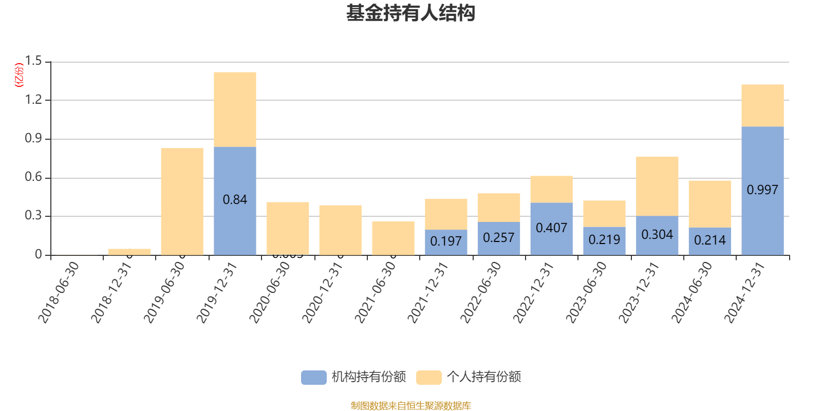 截至2024年12月31日,基金持有人共计7652户,合计持有1.32亿份。其中管理人员工持有37.22万份,占比0.28%,机构持有份额占比75.37%,个人投资者占比24.63%。