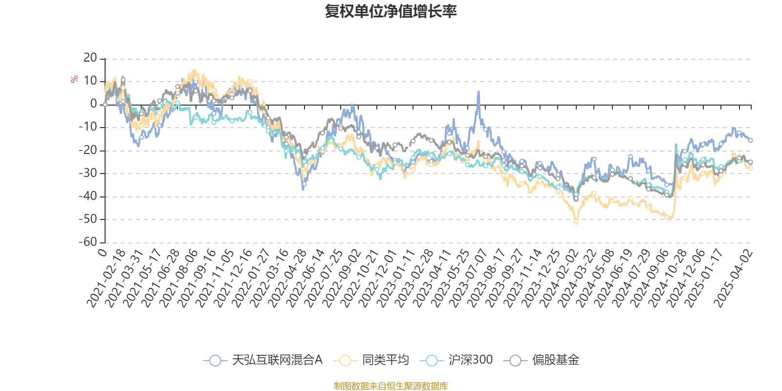 截至4月2日,天弘互联网混合A近三个月复权单位净值增长率为4.86%,位于同类可比基金141/202;近半年复权单位净值增长率为9.77%,位于同类可比基金113/202;近一年复权单位净值增长率为19.01%,位于同类可比基金119/198;近三年复权单位净值增长率为9.66%,位于同类可比基金44/134。